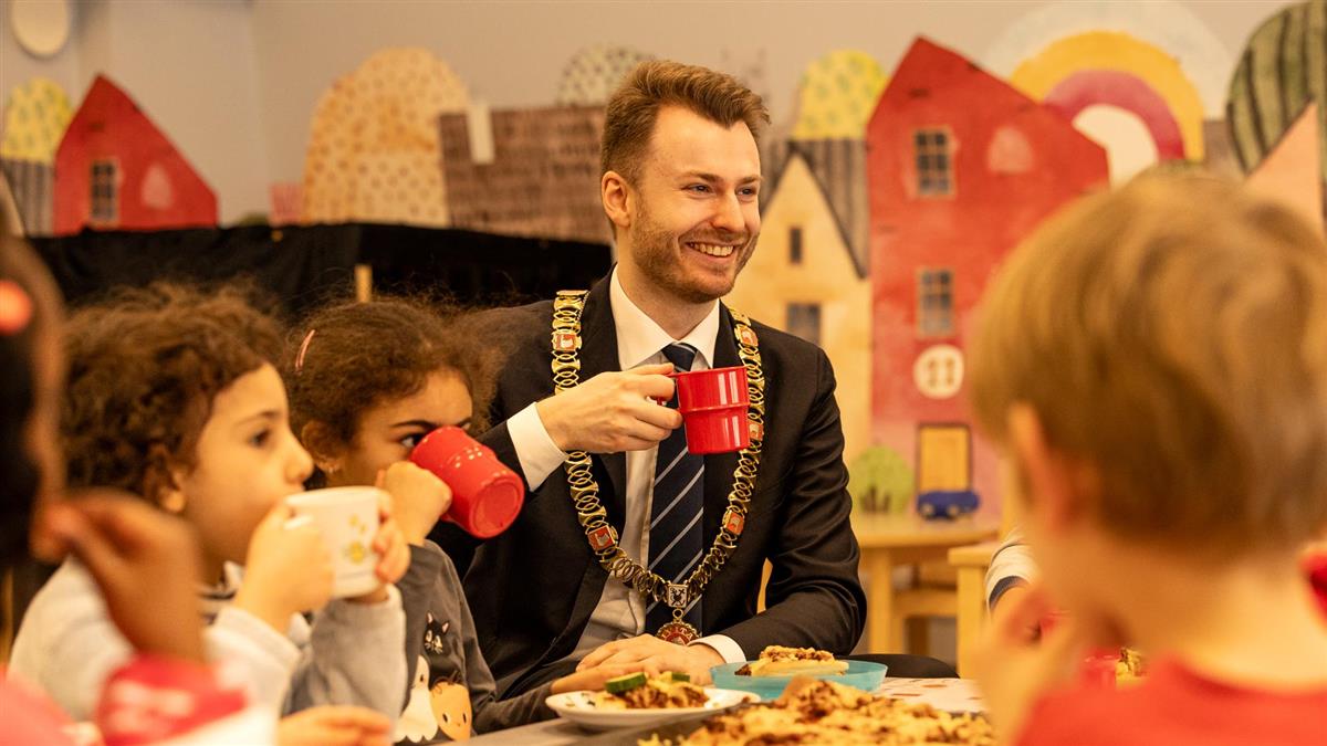 Det var rom for ordføreren rundt lunsjbordet på Storhaugen barnehage.