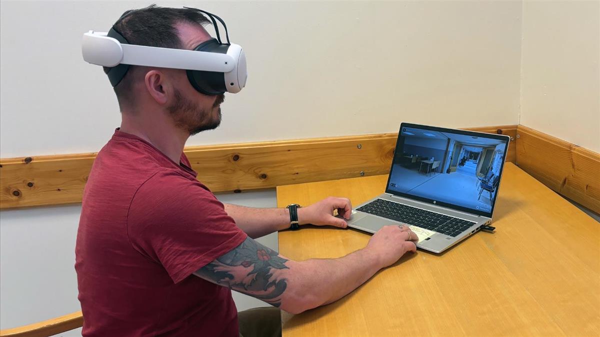 Kristian Roset med VR-briller.Arbeid og aktivitet i Ålesund kommune deltek no i VRINK-prosjektet, eit samarbeid mellom Ålesund kommune og NTNU som utforskar korleis VR og ny teknologi kan brukast for å styrke inkludering og deltaking.