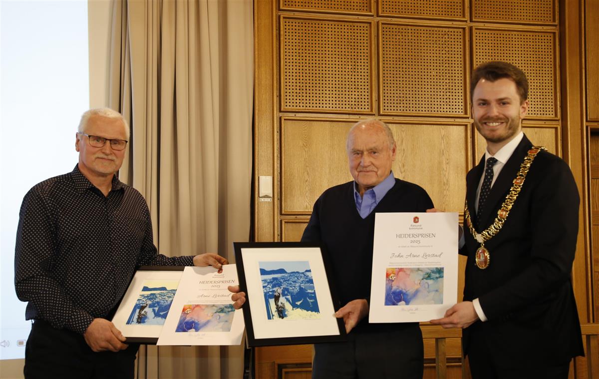 Hedersprisvinnerne John Arne og Arne Lerstad med ordfører Håkon Lykkebø StrandHeidersprisen blei delt ut til John Arne og Arne Lerstad.