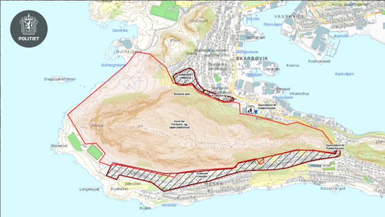 Under pressebriefen med Politiet onsdag føremiddag vart det informert om det er innført formelt ferdselsforbod for Sukkertoppen.