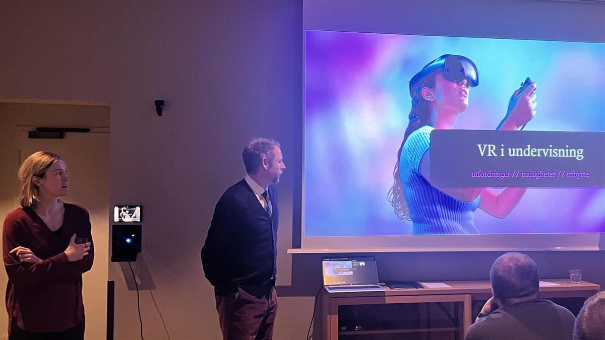 - Lærerne Øyvind Rambech og Linn Jeanette Rønes delte både muligheter og utfordringer: - VR gir elevene motivasjon og mestringsfølelse, men tekniske utfordringer og mangel på flåtestyring kan være krevende.