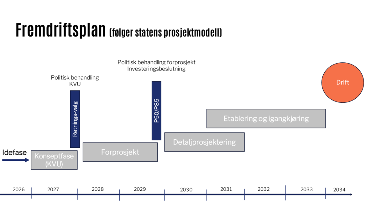 I saka som vart lagt fram er framdriftsplanen skissert slik: